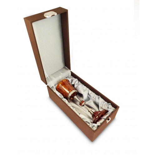 Состав: янтарь, белая ювелирная бронза. Высота бокала - 18 см, диаметр основания - 6,5 см. Объем бокала - 75 мл. Оттенок янтаря может отличаться от представленного на фото. Поставляется в подарочном футляре. В случае отсутствия товара на складе, срок изготовления может варьироваться от одного дня до 3 недель.