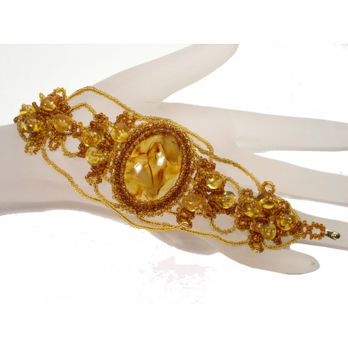 Браслет из балтийского янтаря и бисера 20008