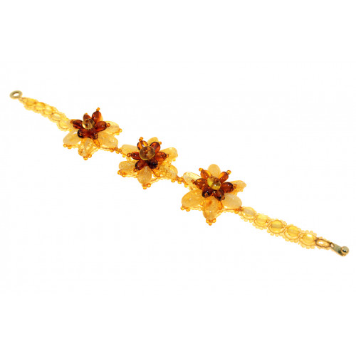 Браслет с тремя цветами из балтийского янтаря и бисера 20913