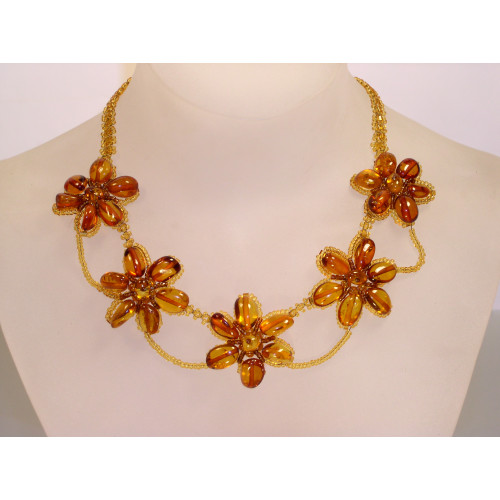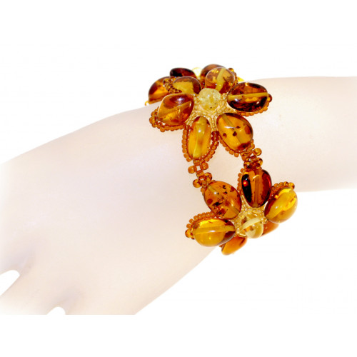 Браслет с цветами из балтийского янтаря и бисера 20910-1