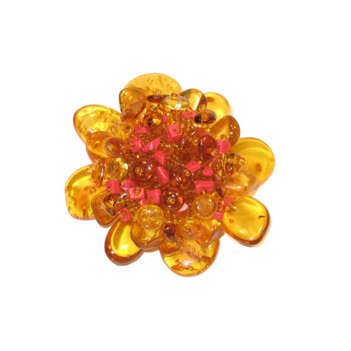 Брошь из балтийского янтаря, бисера с использованием коралла 60763-1