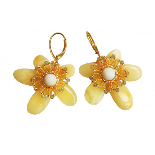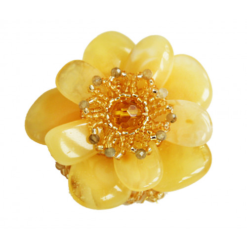 Брошь из светлого цельного янтаря с бисером 60815