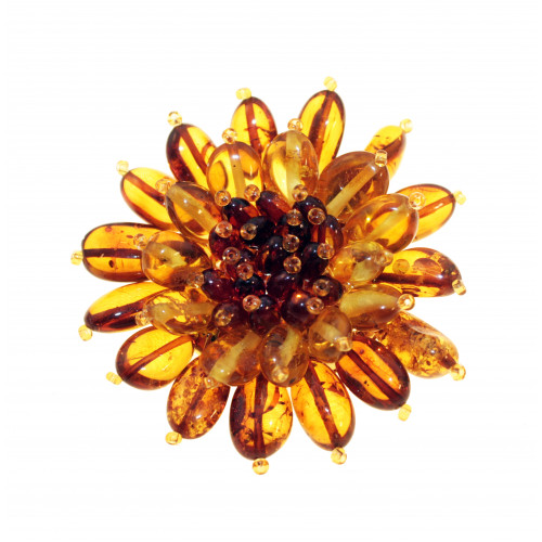 • Брошь в виде цветка из балтийского янтаря, бисера и ювелирного сплава 60801