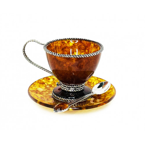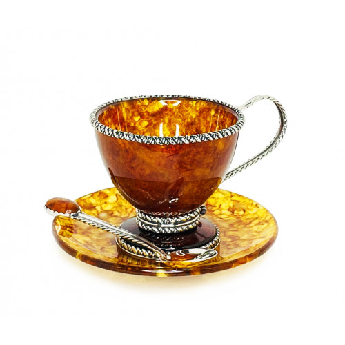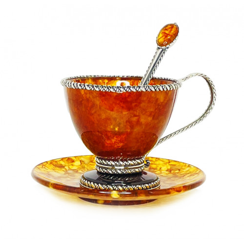 Объем чашки - 120 мл. Диаметр блюдца 12 см., длина ложечки - 12 см. По запросу можно делать наборы из одной, двух, шести чашек в одном футляре. Оттенок янтаря может отличаться от оттенка, представленного на фотографии.