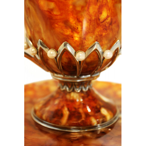 Состав: янтарь, речной культивированный жемчуг, серебро 875 пробы .