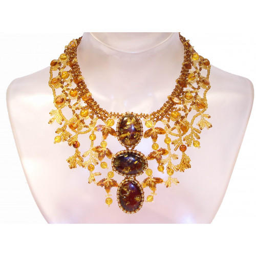 Элегантное колье из натурального янтаря с бисером 10090