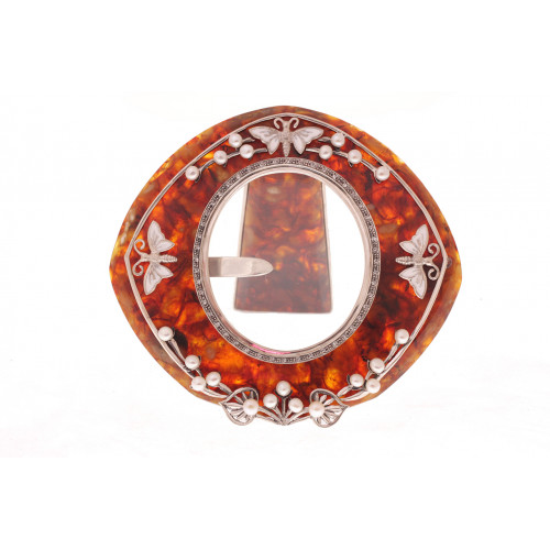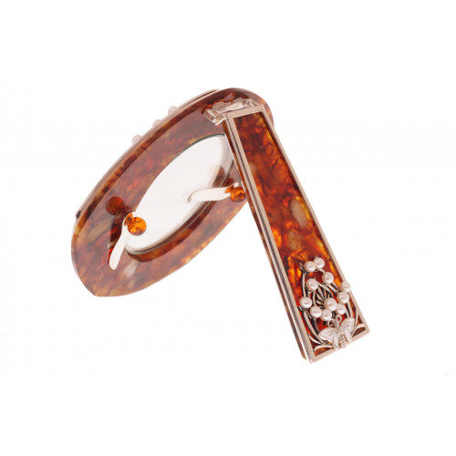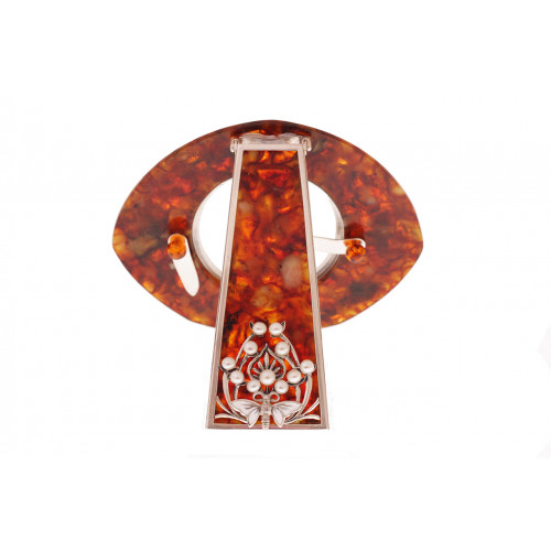 Состав: янтарь, серебро 875 пробы , эмаль, речной жемчуг, стразы Сваровски. Оттенок янтаря может отличаться от оттенка на фотографии. Размеры 10,5х11,5 см. Поставляется в подарочном футляре.