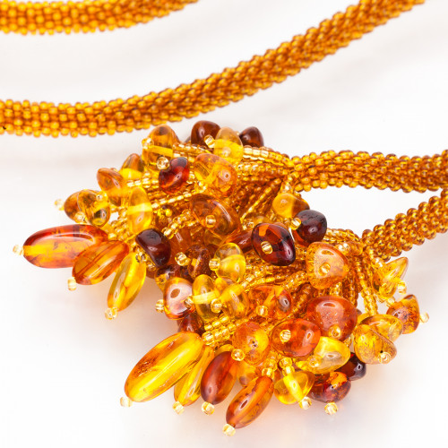 Состав: янтарь, бисер. Длина кулона – 70-75 см. Под заказ длина может быть любой. В случае отсутствия товара на складе срок изготовления и поставки от 3 недель.