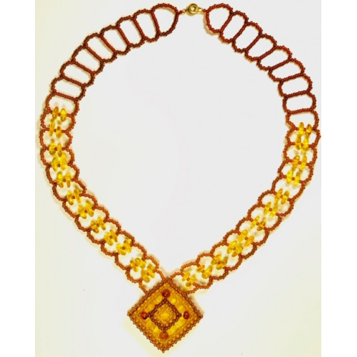 Изящное колье плетеное из бисера и балтийского янтаря 11141