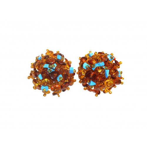 Клипсы из балтийского янтаря, бисера и бирюзы 40076