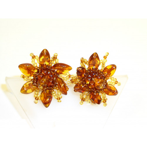 Клипсы из балтийского янтаря и бисера 40015