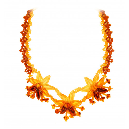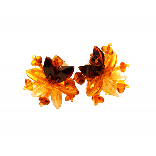 Клипсы из балтийского янтаря и бисера в форме цветов 40041-1