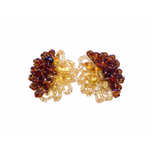 Клипсы из натурального балтийского янтаря двух цветов и бисера 40003