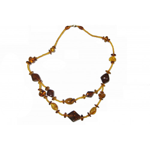 Состав: янтарь, бисер. Длина колье – 45 см. Под заказ длина может быть любой. В случае отсутствия товара на складе срок изготовления и поставки от 3 недель.