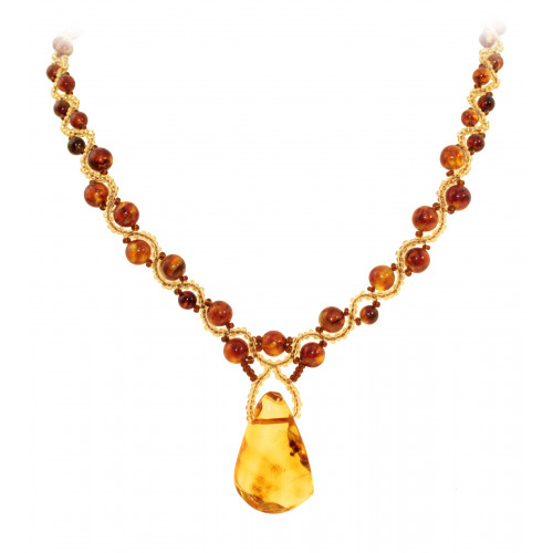 Состав: янтарь, бисер. Длина колье – 45 см. Под заказ длина может быть любой. В случае отсутствия товара на складе срок изготовления и поставки от 3 недель.
