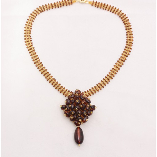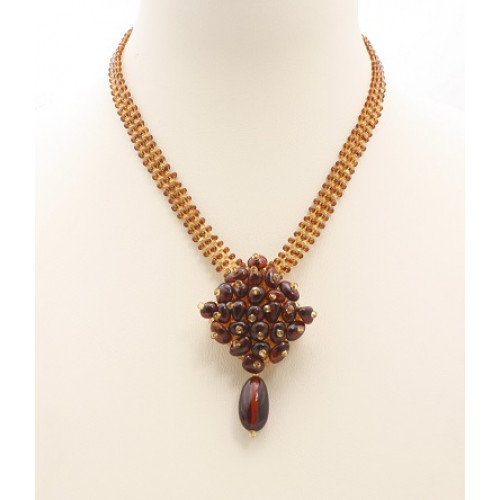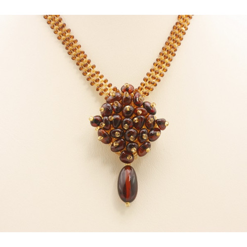 Колье из бисера с россыпью из балтийского янтаря 11120-1