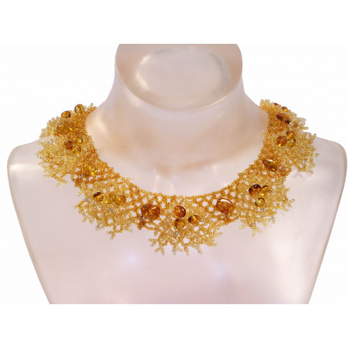 Состав: янтарь, бисер. Длина колье –43- 45 см. Под заказ длина может быть любой. В случае отсутствия товара на складе срок изготовления и поставки от 3 недель.