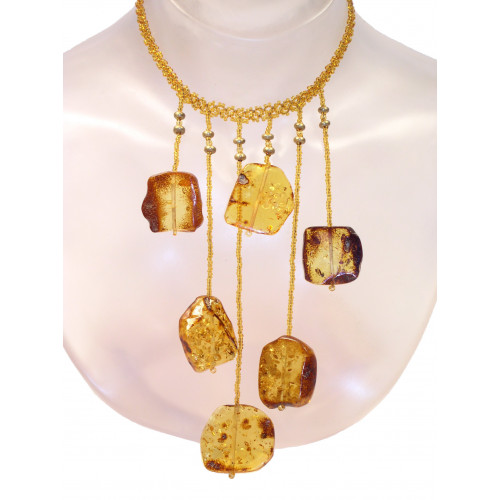 Состав: янтарь, бисер. Длина колье – 45 см. Под заказ длина может быть любой. В случае отсутствия товара на складе срок изготовления и поставки от 3 недель.