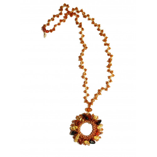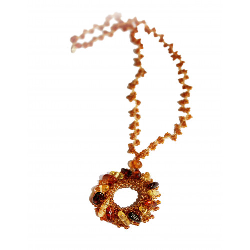 Колье из природного янтаря с бисером 11080