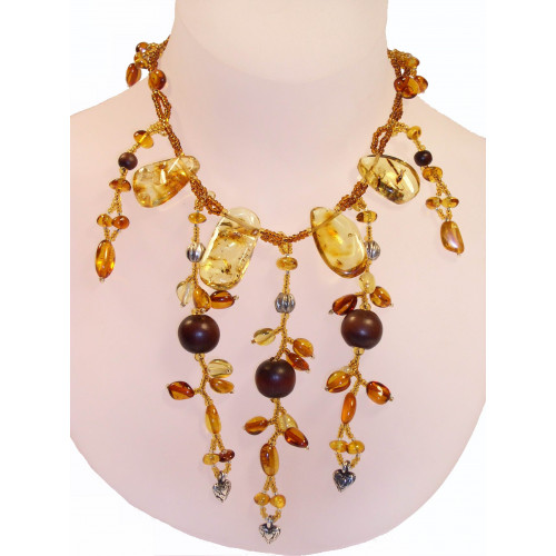 Состав: янтарь, бисер. Длина колье – 45 см. Под заказ длина может быть любой. В случае отсутствия товара на складе срок изготовления и поставки от 3 недель.