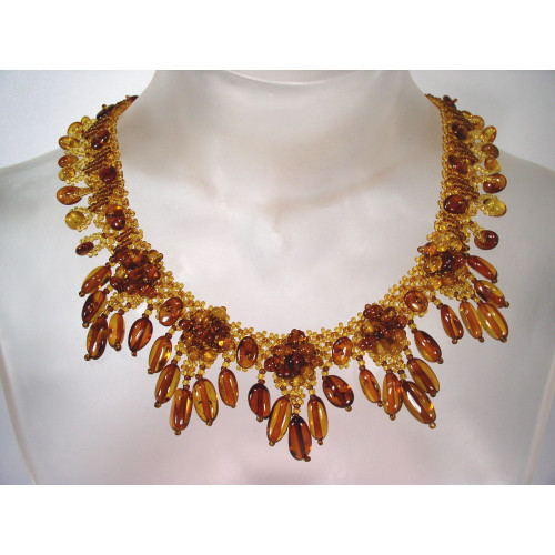 Состав: янтарь, бисер. Длина колье – 45 см. Под заказ длина может быть любой. В случае отсутствия товара на складе срок изготовления и поставки от 3 недель.