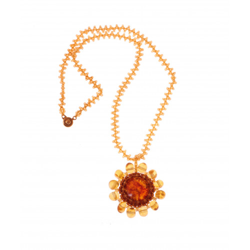 Колье-кулон из янтаря и бисера 10923
