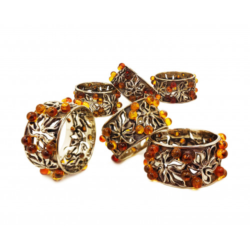 Изысканные кольца для салфеток из белой ювелирной бронзы (или серебра по запросу), украшенные натуральными янтарными бусинами украсят любой стол и станут отличным подарком для любого праздника.