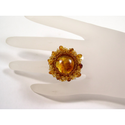• Кольцо из натурального балтийского янтаря и бисера 50003