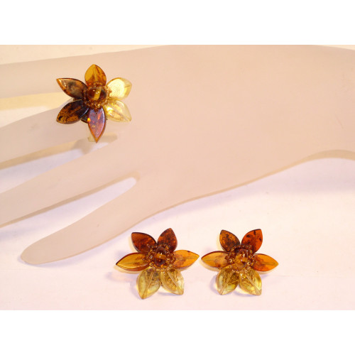 Состав: натуральный янтарь. Комплект: кольцо, клипсы. Стоимость кольца - 2700 рублей; стоимость клипс - 3500 рублей. Оттенок изделия может отличаться от оттенка на фотографии. Поставляется в льняном мешочке с янтарной пуговицей и картонной коробочке. В случае отсутствия товара на складе, срок доставки - от 3 недель.