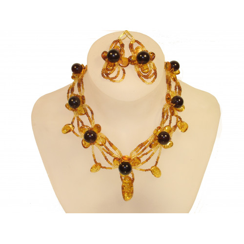 • Комплект из натурального янтаря: колье и серьги 10866e;10866n