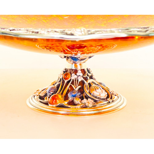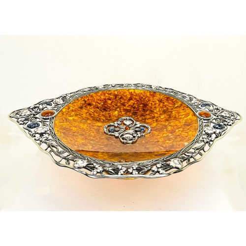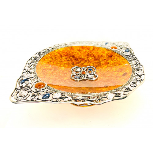 Состав: янтарь, белая ювелирная бронза, эмаль, кристаллы Сваровски.
