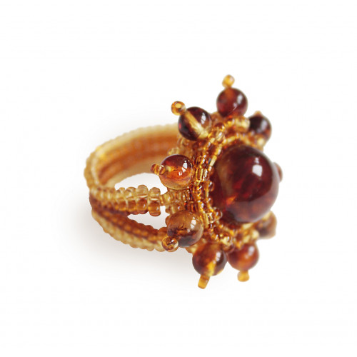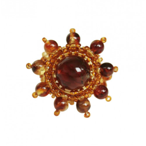 Красивое кольцо из балтийского янтаря и бисера 50692