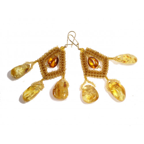 Красивые серьги из балтийского янтаря бисера и ювелирного сплава 40420