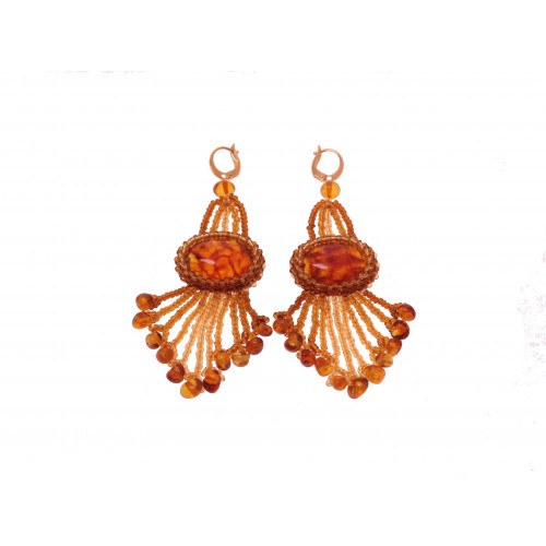 Красивые серьги из балтийского янтаря и бисера 40790-1