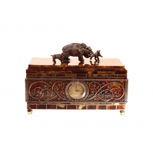 Состав: натуральный янтарь, белая ювелирная бронза или (под заказ). Высота: 14,0 см (общая с фигурами). Ширина: 19,5 см. Глубина: 10,0 см. Оттенок янтаря может отличаться от оттенка на фотографии. Поставляется в подарочном футляре. В случае отсутствия товара на складе, срок изготовления и поставки от 3-х недель.