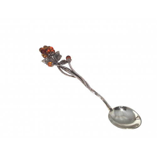 Состав: янтарь, серебро 875 пробы. Вес серебра в изделии: 21,5 гр. Длина ложечки - 12,5 см. Поставляется в подарочном футляре.