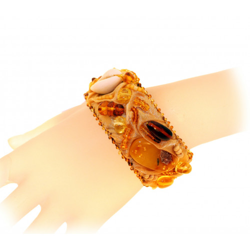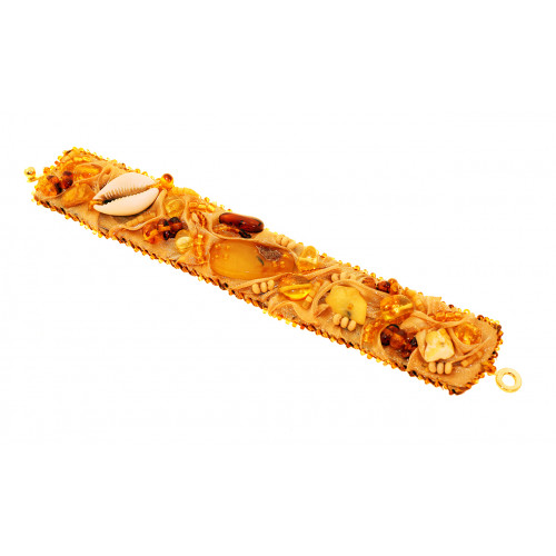 Необычный браслет из янтаря, бисера и натуральной кожи 20909