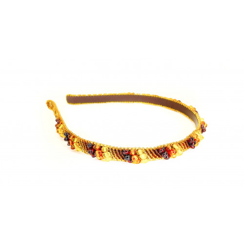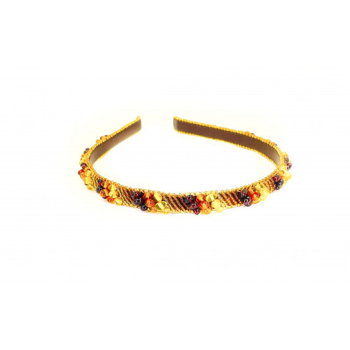 Ободок для волос из янтаря бисера и натуральной кожи 137