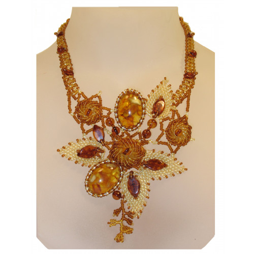 Оригинальное колье из балтийского янтаря и бисера 10813