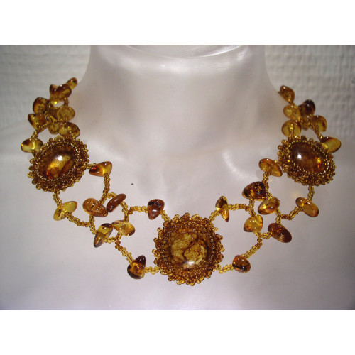 Ожерелье из натурального янтаря с бисером 10588