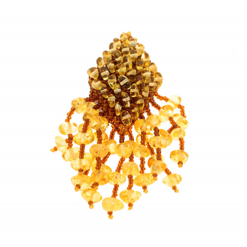 Плетеная брошь из балтийского янтаря бисера и ювелирного сплава 60807