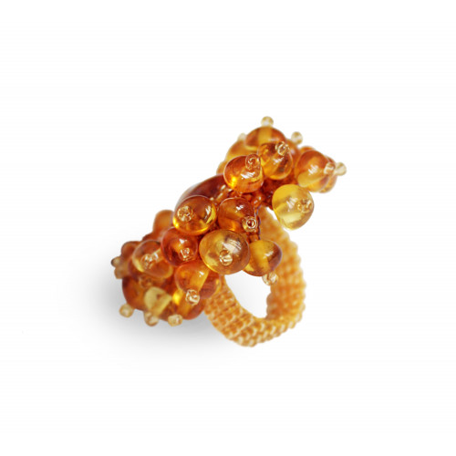 Плетеное кольцо из балтийского янтаря и бисера 50684