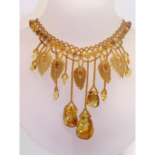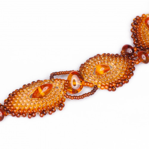 Плетеный браслет из балтийского янтаря и бисера 20935-1