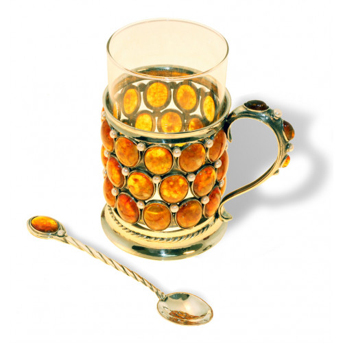 Состав: янтарь, речной жемчуг, серебро 875 пробы . Продается в комплекте с тонкостенным стаканом емкостью 250 мл. Поставляется в подарочном футляре. Оттенок янтаря может отличаться от оттенка на фотографии.