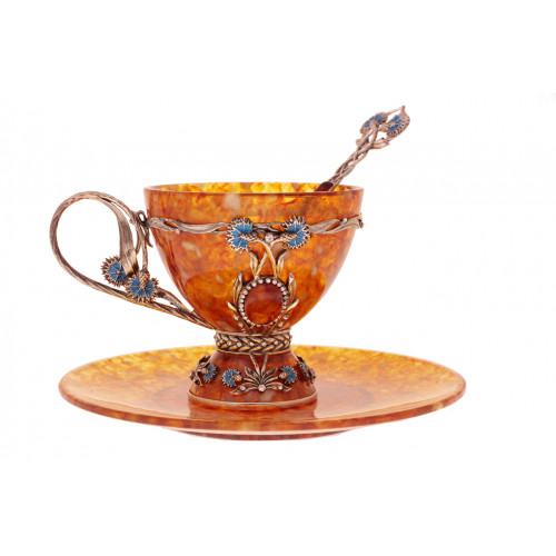 Чайная чашка "Васильки" из янтаря с ложечкой 5002/L