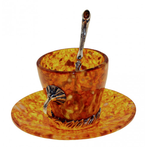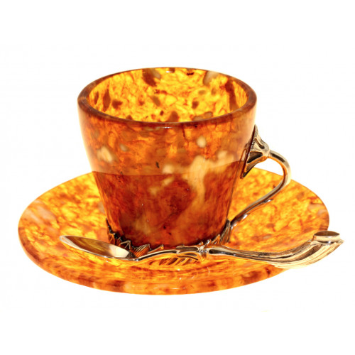 Высота чашки: 5,5 см, диаметр чашки: 6,0 см, диаметр блюдца: 11,0 см Объем: 75 мл Состав: натуральный янтарь, белая ювелирная бронза. В набор входит чашка, блюдце, ложечка. Набор в элегантном футляре. Может поставляться наборами на 1, на 2, на 3 и на 6 персон. Мы рекомендуем пить из этой чашки кофе температурой не более 80 гр. Оттенок янтаря может отличаться от оттенка, представленного на фотографии.