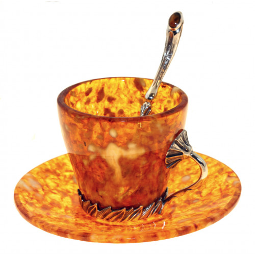 Высота чашки: 5,5 см, диаметр чашки: 6,0 см, диаметр блюдца: 11,0 см Объем: 75 мл Состав: натуральный янтарь, серебро 875 пробы . В набор входит чашка, блюдце, ложечка. Набор в элегантном футляре. Может поставляться наборами на 1, на 2, на 3 и на 6 персон. Мы рекомендуем пить из этой чашки кофе температурой не более 80 гр. Оттенок янтаря может отличаться от оттенка, представленного на фотографии.