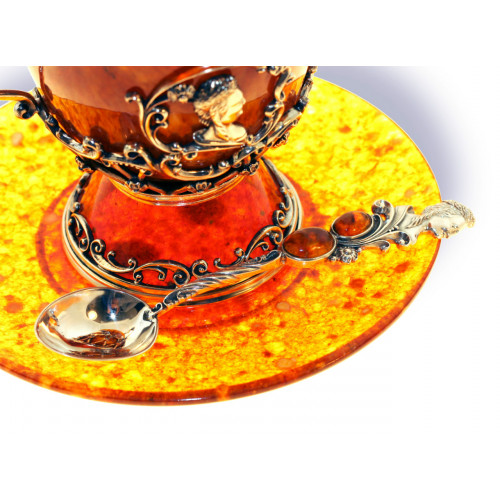Состав: натуральный янтарь, белая ювелирная бронза, серебро 875 пробы (только ложечка или под заказ весь набор).