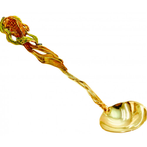 Ложка из серебра 875 пробы, отделана янтарем и эмалью. Вес серебра в ложечке - 25 гр.