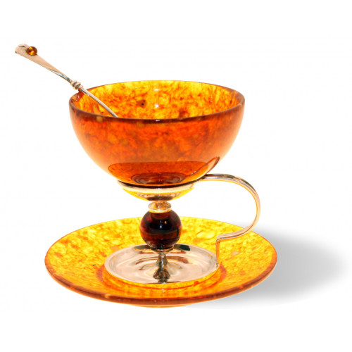 Высота чашки: 8,0 см, диаметр чашки: 8,0 см, диаметр основания чашки: 5,5 см, длина ложечки: 10,0 см, диаметр блюдца: 11,0 см. Состав: натуральный янтарь, серебро 875 пробы . В набор входит чашка, блюдце, ложечка (серебряная). Набор в элегантном футляре. Может поставляться наборами на 1, на 2, на 3 и на 6 персон. Рекомендуемая температура для горячих напитков (чай, кофе) не более 80 градусов. Оттенок янтаря может отличаться от оттенка на фотографии. В случае отсутствия товара на складе срок изготовления варьируется от одного дня до трех недель